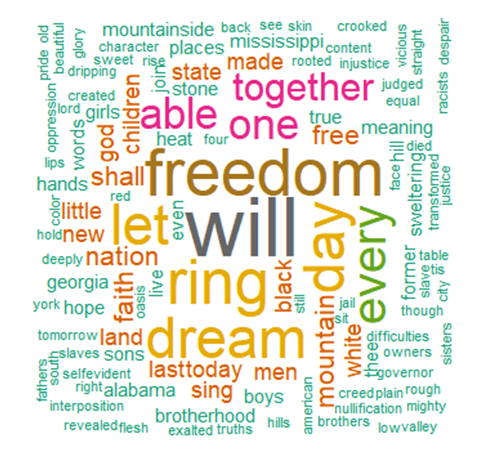 This section is in reference to text mining and word clouds. I have used 2 large data sets for this Martin Luther King’s I Have a Dream speech and a Hunger Games book